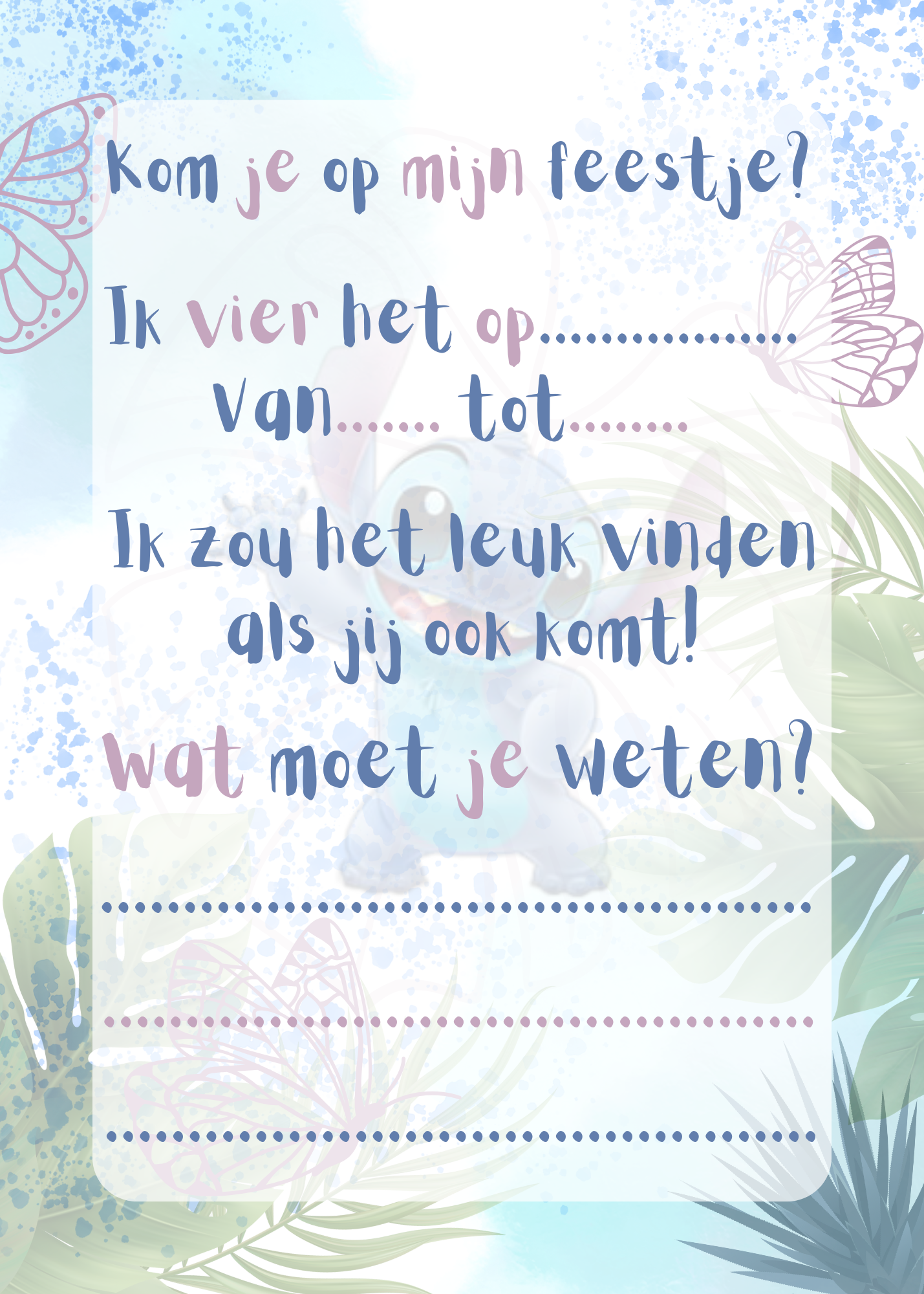 Stitch uitnodiging kinderfeestje