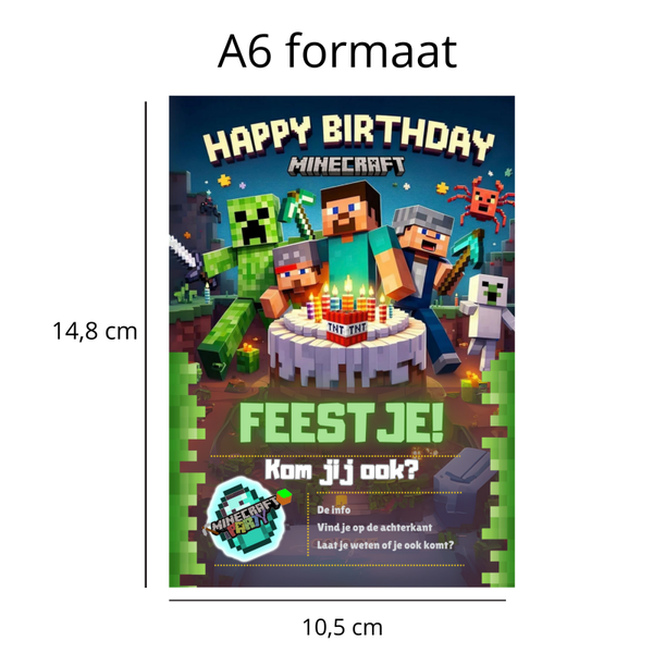 Minecraft Birthday uitnodiging - Kinderfeestje