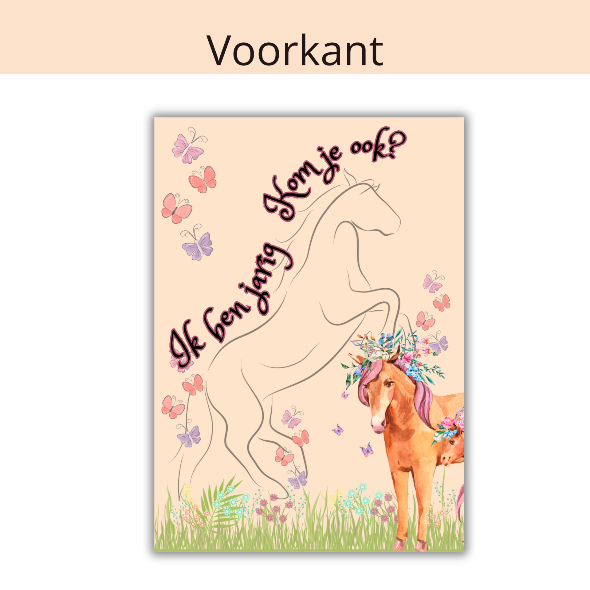 Deze lieve paarden-uitnodiging is perfect voor elk paardenmeisje dat dol is op pony's, rijlaarzen en buitenlucht. Met een vrolijk ontwerp in zachte tinten, een schattige pony en feestelijke details is deze kaart dé start van een onvergetelijk kinderfeestje!