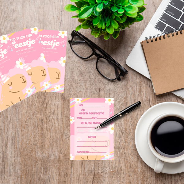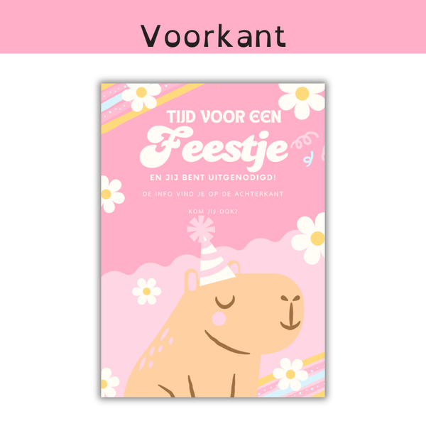 Ben jij gek op capybara’s? Dan is dit dé perfecte uitnodiging voor jouw kinderfeestje!