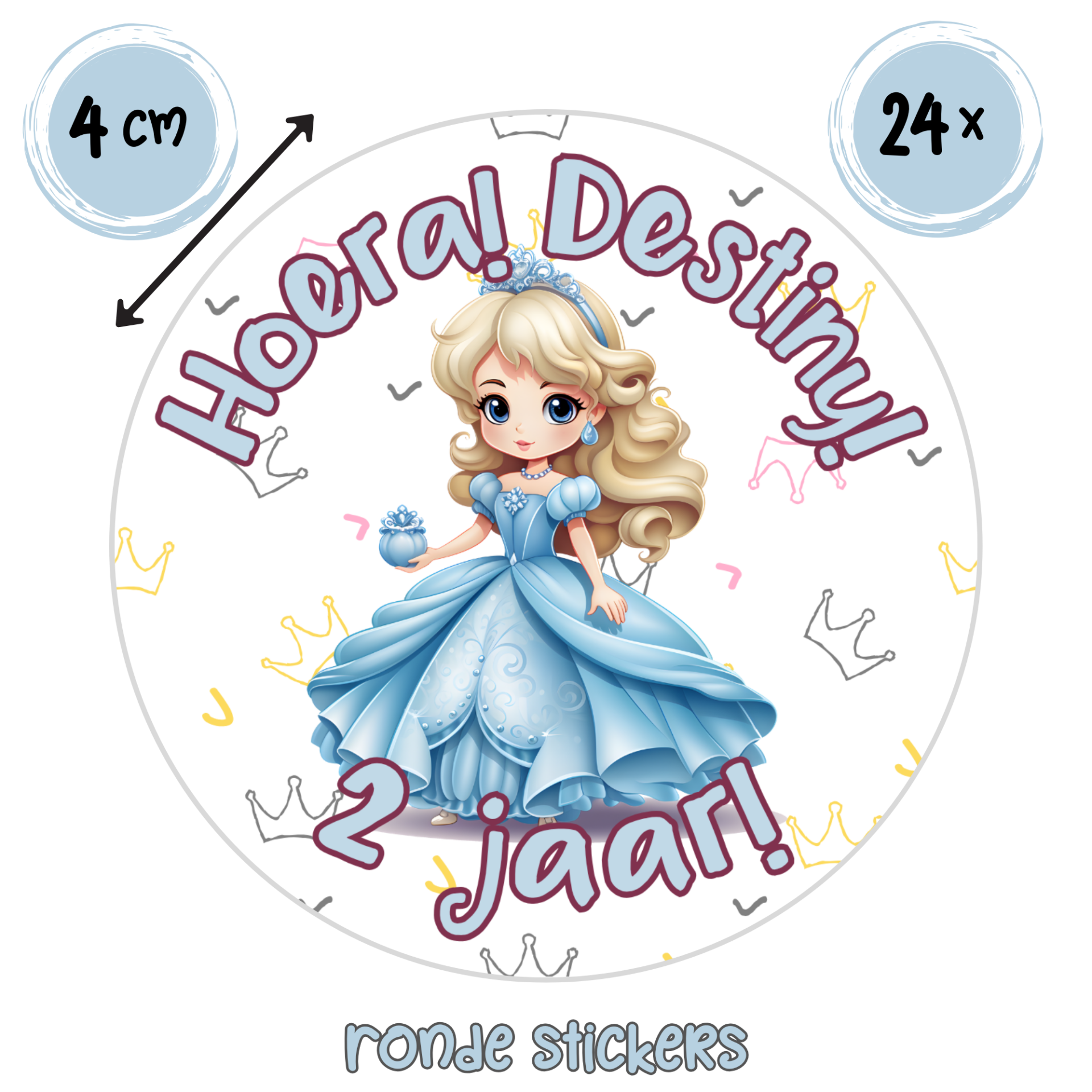 Traktatiesticker Gepersonaliseerd - Disney Prinses - 24 stuks