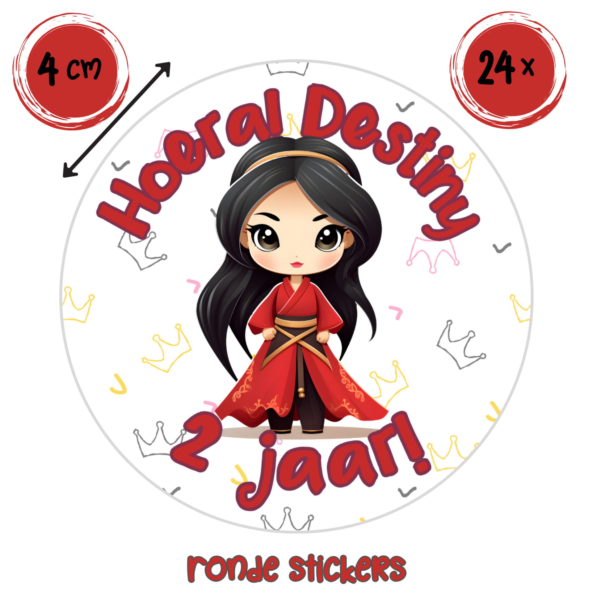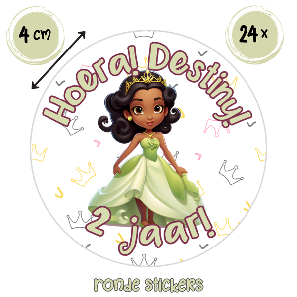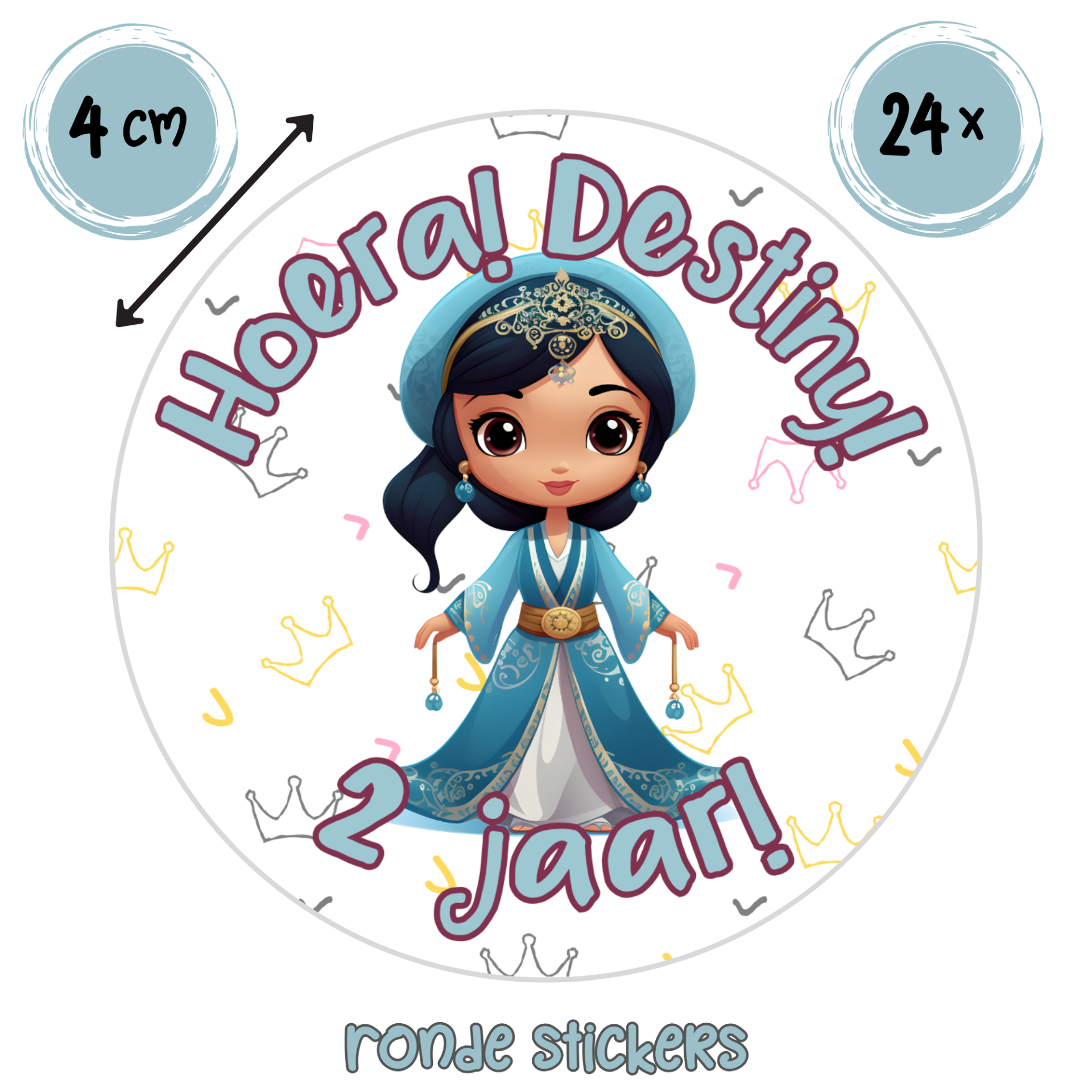 Geef je kinderfeestje een betoverende twist met deze gepersonaliseerde traktatiestickers in prinsessenstijl. Je kiest zelf welke prinses je wilt – bijvoorbeeld Ariël, Vaiana of Mulan en wij voorzien de stickers van naam en leeftijd.