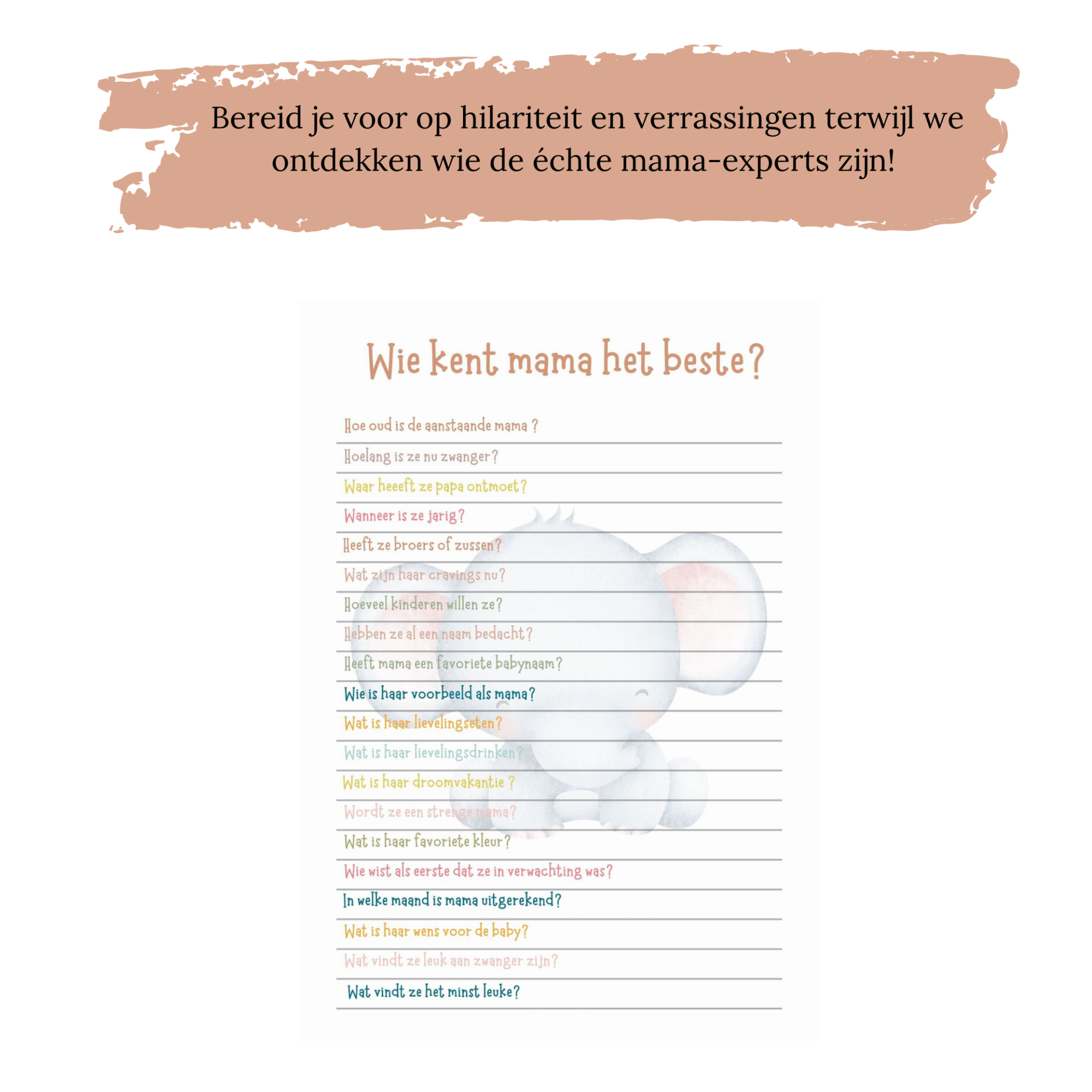Of je nu op zoek bent naar lachwekkend entertainment of hartverwarmende momenten, onze Babyshower Spelletjes Set heeft voor elk wat wils.