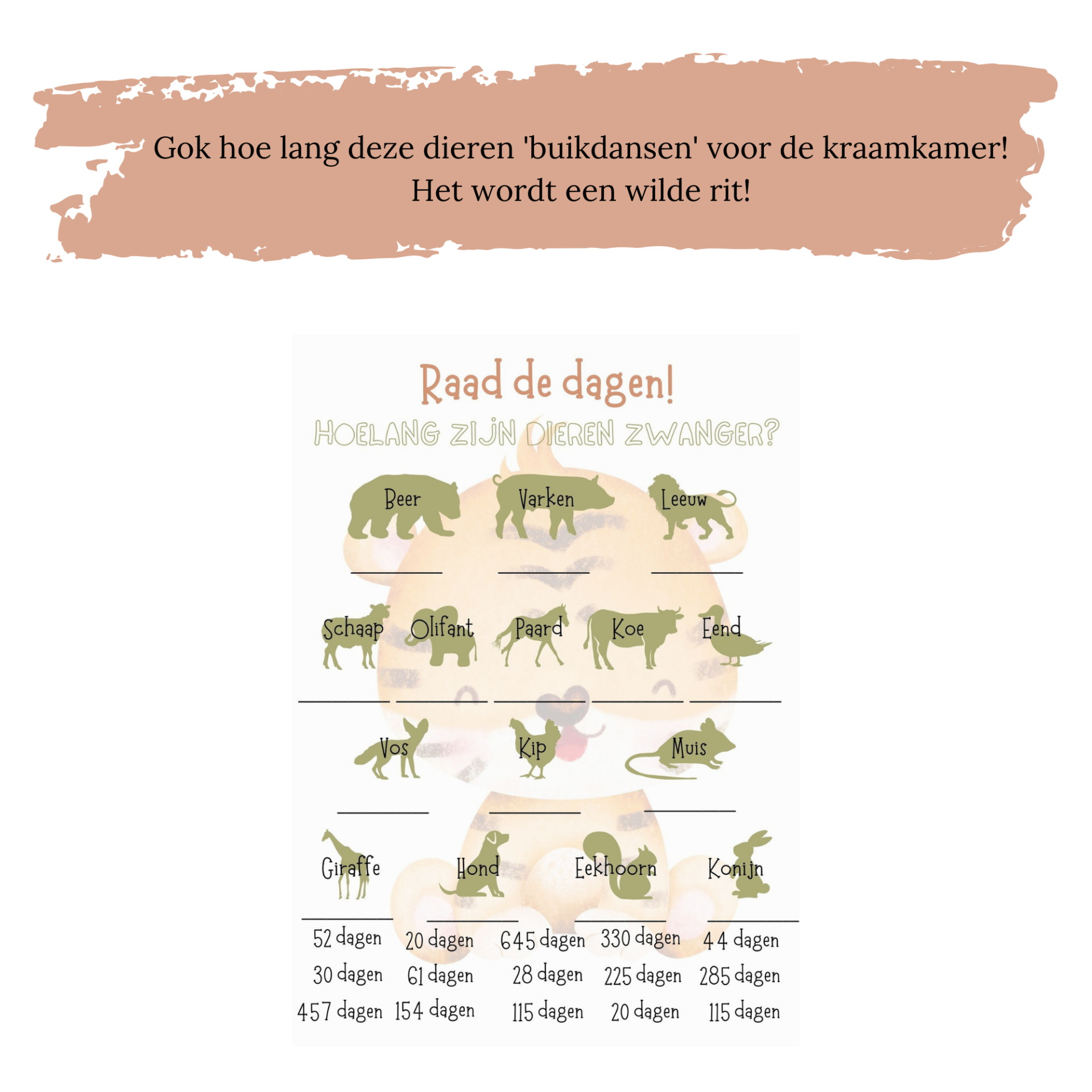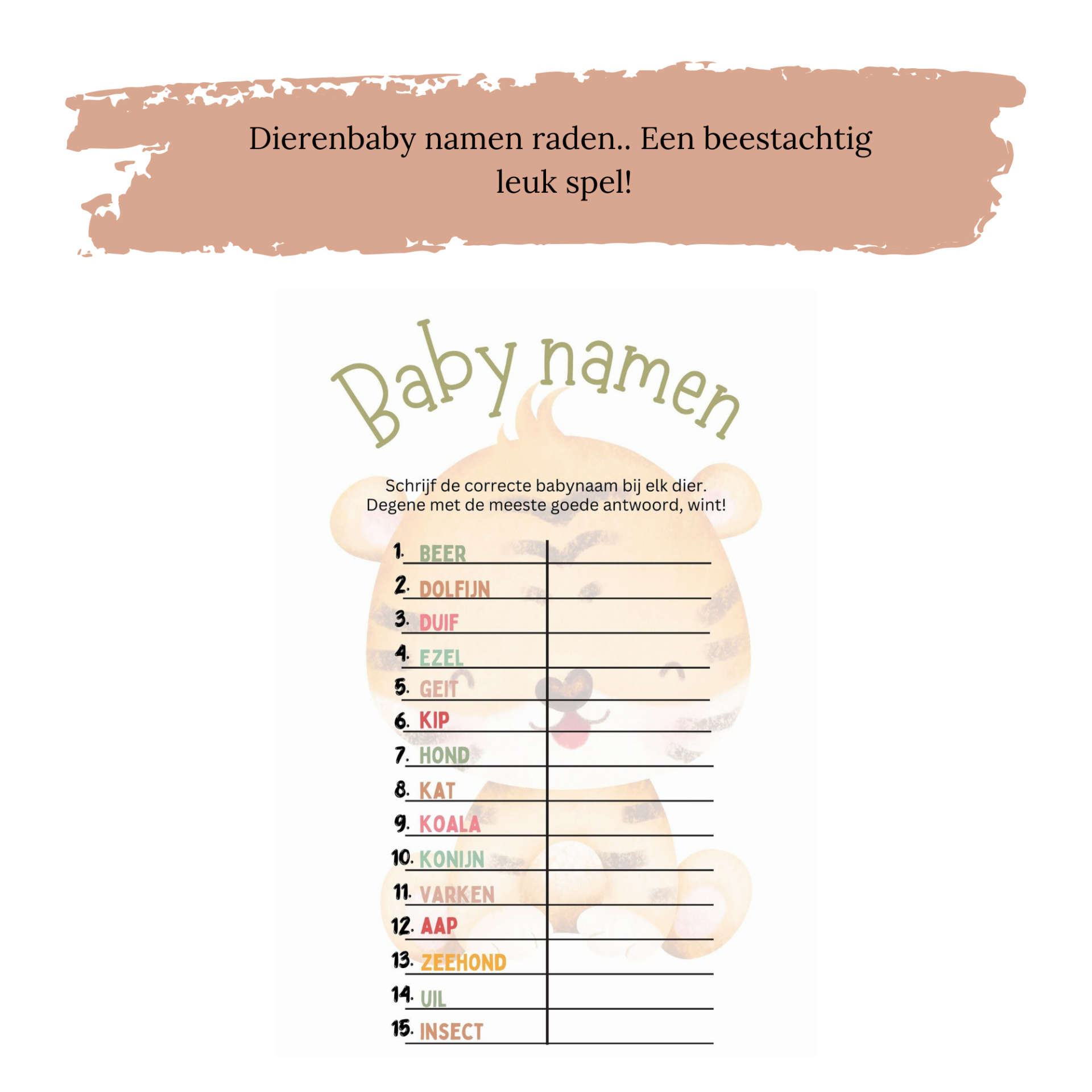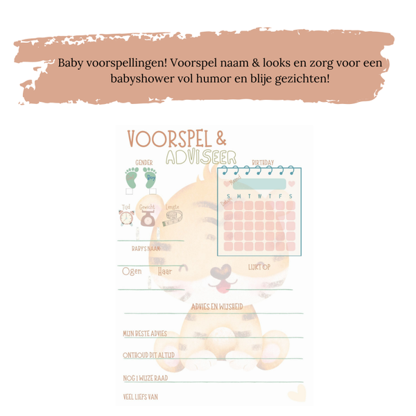 Babyshower spelletjes Tijger (5 spellen/invulkaarten)