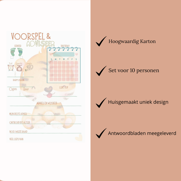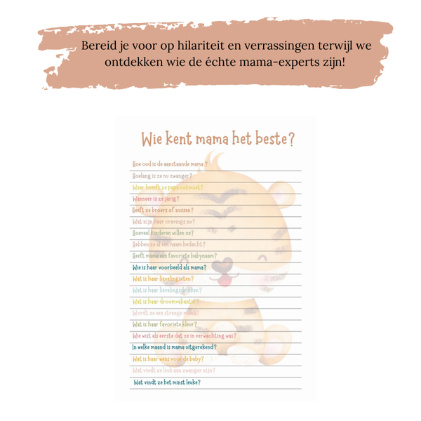 Of je nu op zoek bent naar lachwekkend entertainment of hartverwarmende momenten, onze Babyshower Spelletjes Set heeft voor elk wat wils.