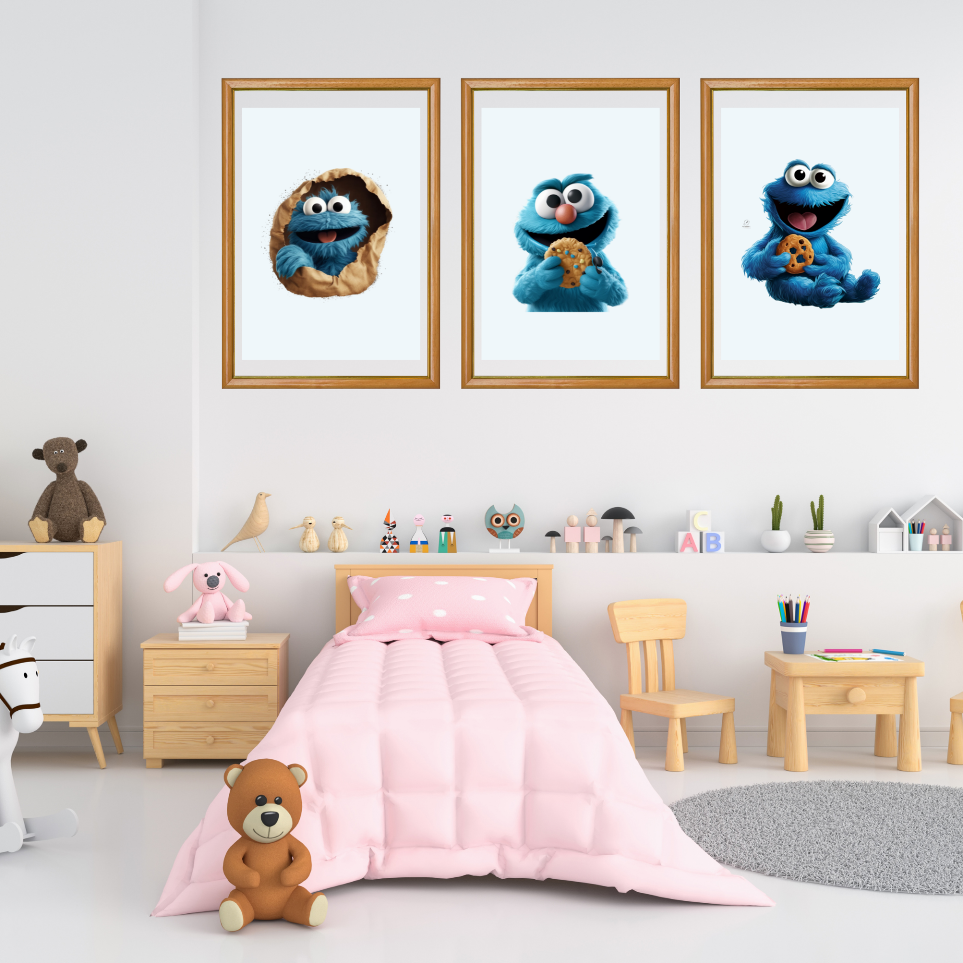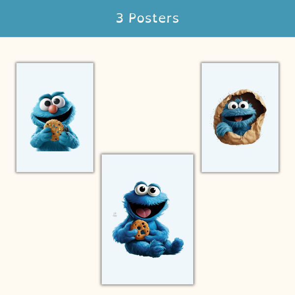 Cookie Monster posters kinderkamer – Set van 3 A3 wall art