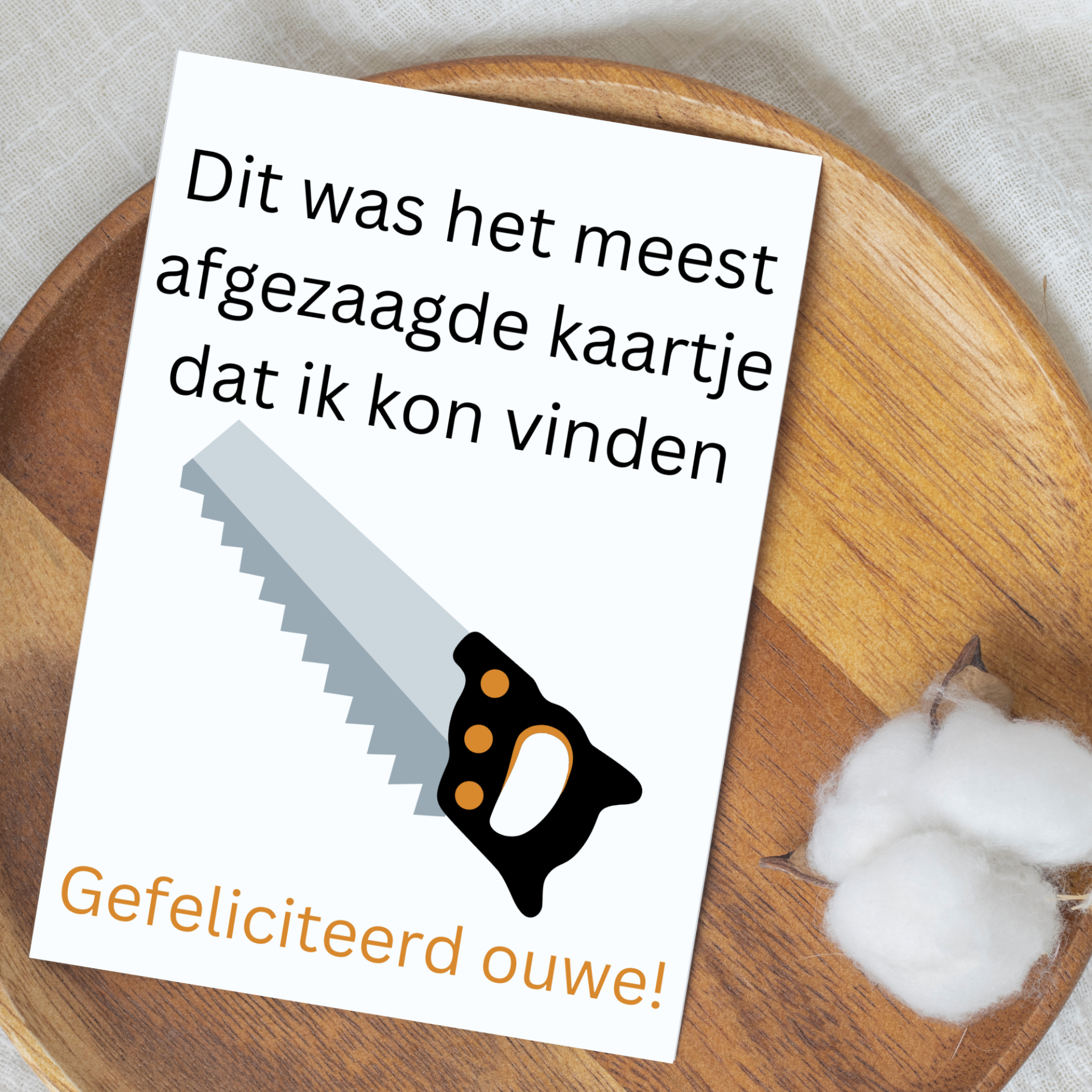 Grappige verjaardagskaart Afgezaagd – Met zaag