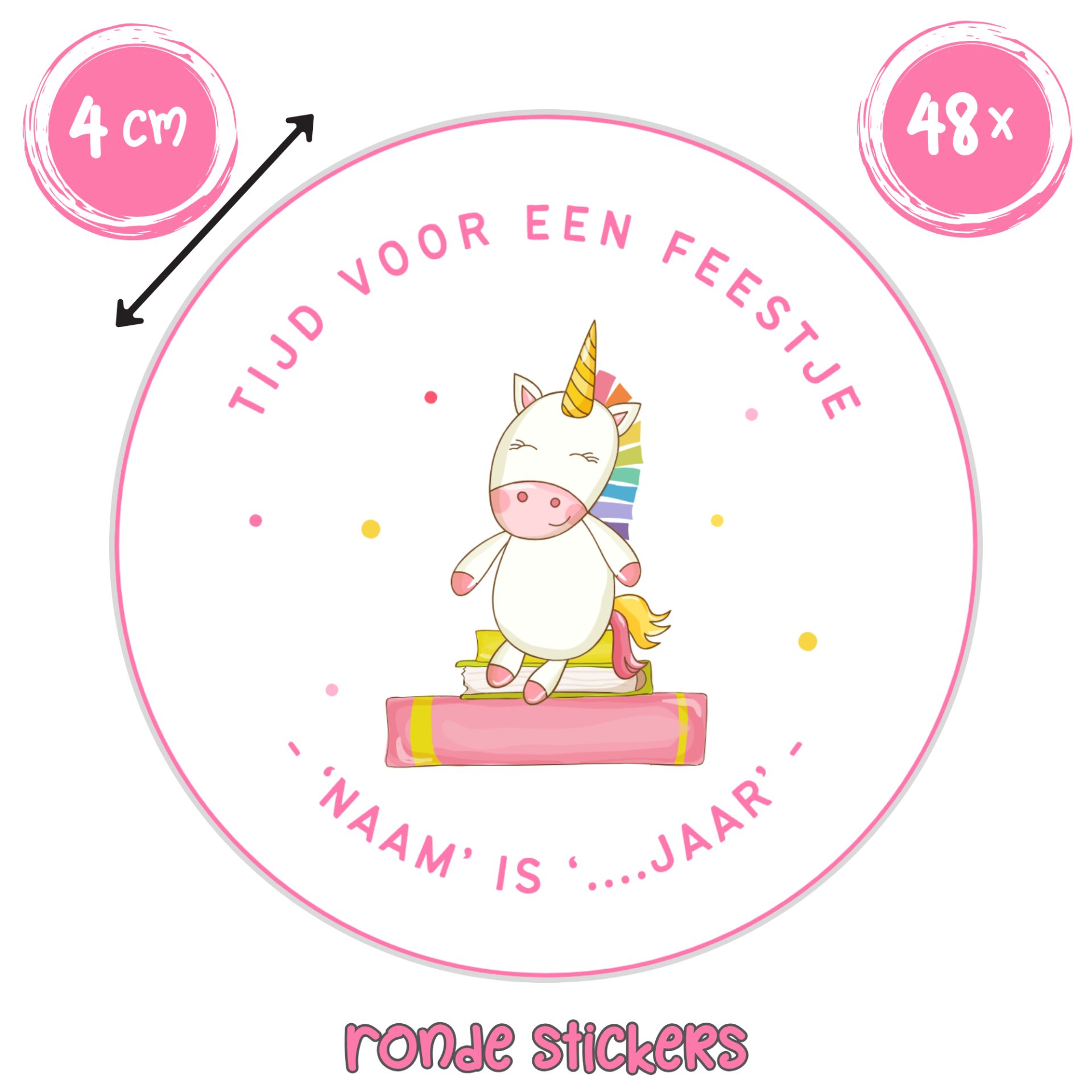 Unicorn Traktatie Stickers met Naam en Leeftijd – 48 stuks Gepersonaliseerd